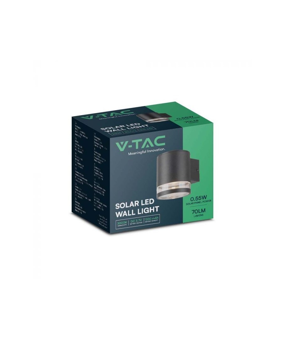 Créez une atmosphère conviviale et prolongez vos moments en extérieur avec l'applique murale solaire LED V-Tac 0,55W en noir.