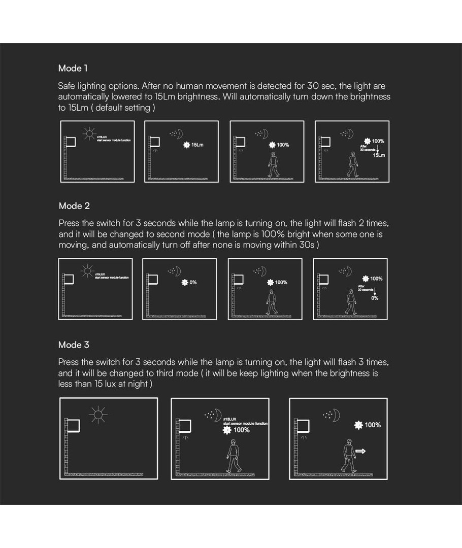 L'applique est équipée d'un capteur PIR qui assure un allumage automatique en cas de mouvement, ce qui est à la fois pratique et économique en énergie. Le produit est également certifié IP65, ce qui signifie qu'il est optimal pour une utilisation en extérieur. Il résiste à la pluie et aux éclaboussures, augmentant ainsi considérablement sa durée de vie.