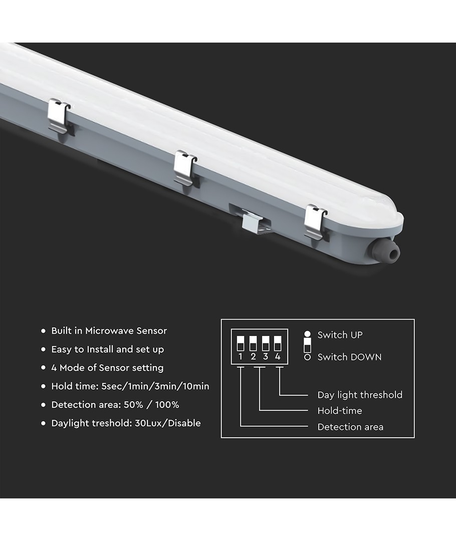 | Remarques supplémentaires | Max in series: Upto 10 Units. Light-on duration: 5s, 1 min, 3 min, 10 min. Sensor type: Microwave. Sensor distance: 4-10 Meters. Ambient light level: 30 Lux/Disable. |