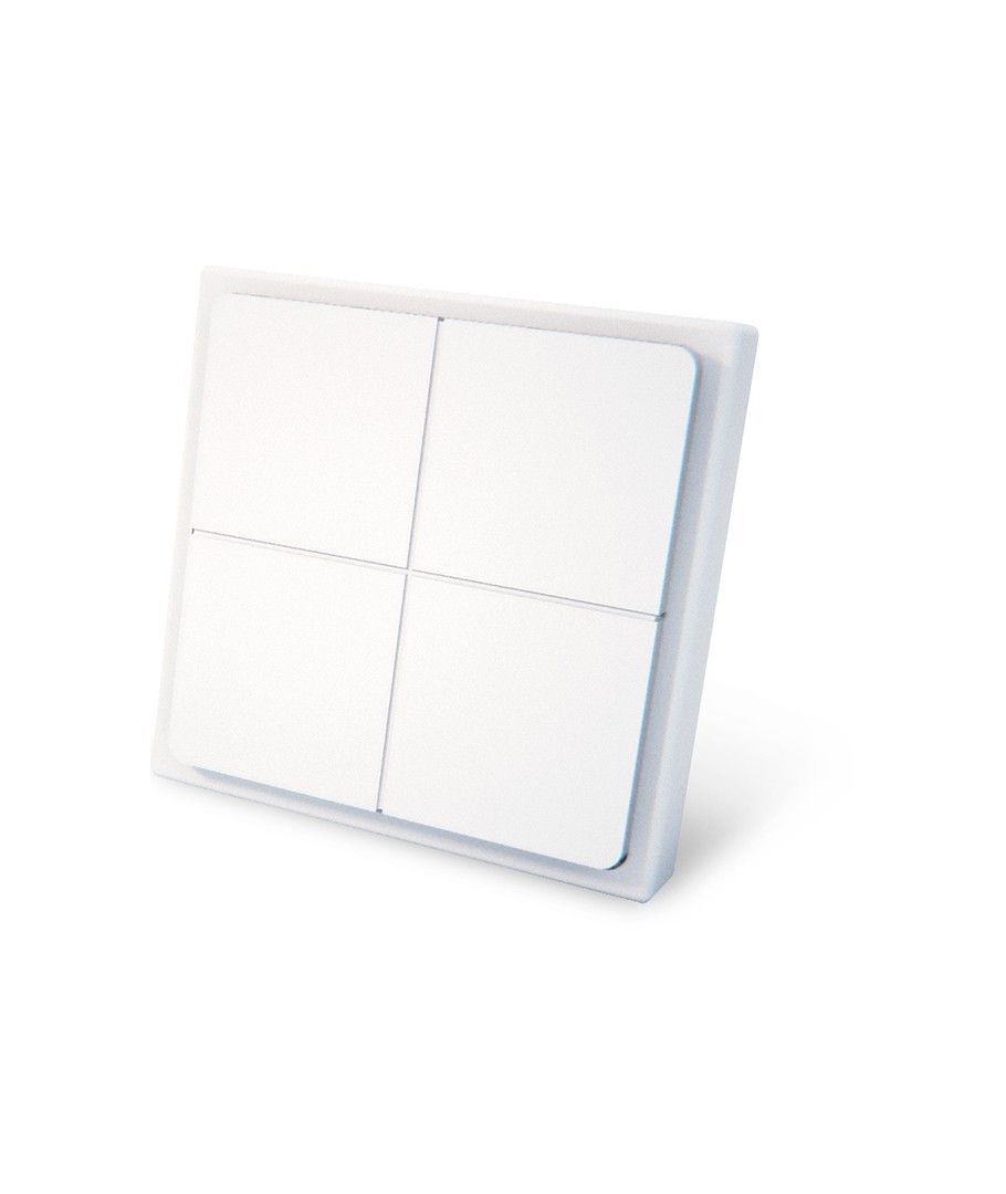 Le bouton dispose de 4 touches qui vous permettent de contrôler la lumière dans différents groupes ou pièces. Vous pouvez allumer, éteindre ou tamiser la lumière selon vos besoins. Et si vous souhaitez ajouter une touche de personnalisation à vos touches, vous pouvez acheter des touches avec différents symboles, par exemple des ampoules ou d'autres icônes.