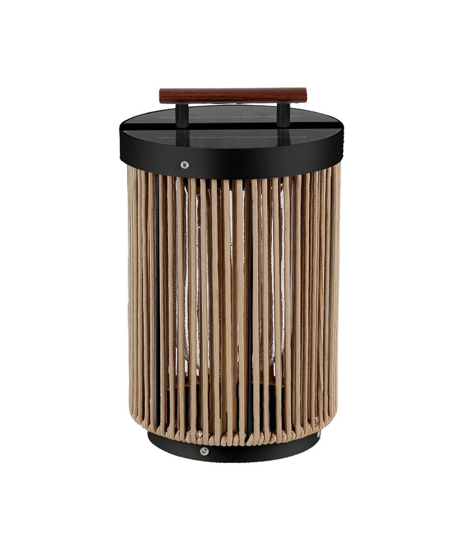 Unikt Design:Den sorte finish kombineret med hampegreb og træhåndtag gør lygten til en stilfuld tilføjelse til enhver udendørs indretning. Det naturlige look fungerer godt i både moderne og traditionelle haver.