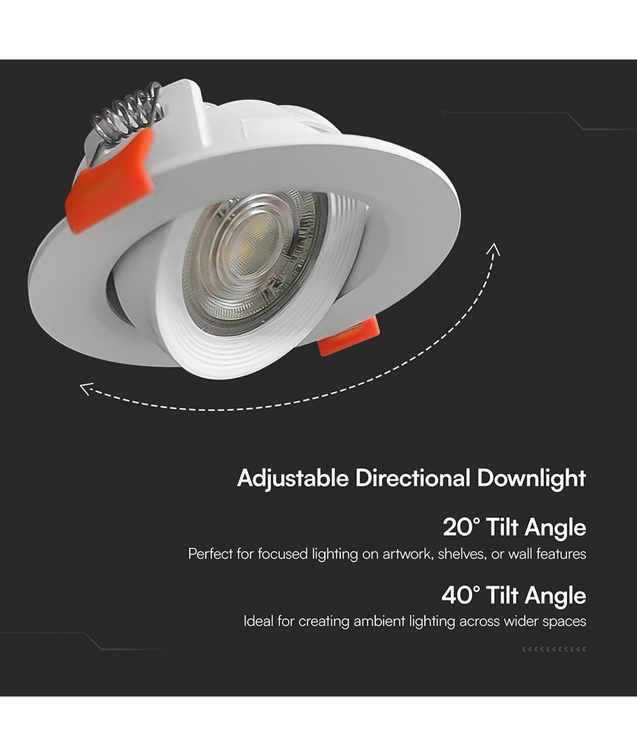 Med en lysstyrke på 510 lumens giver dette indbygningsspot et klart og fokuseret lys med en spredningsvinkel på 38 grader. Dette sikrer, at lyset er præcist og kontrolleret, hvilket skaber det ideelle miljø til både arbejde og afslapning. Den høje lyskvalitet med en RA-værdi på 80-85 betyder, at farver vises naturligt og ægte.