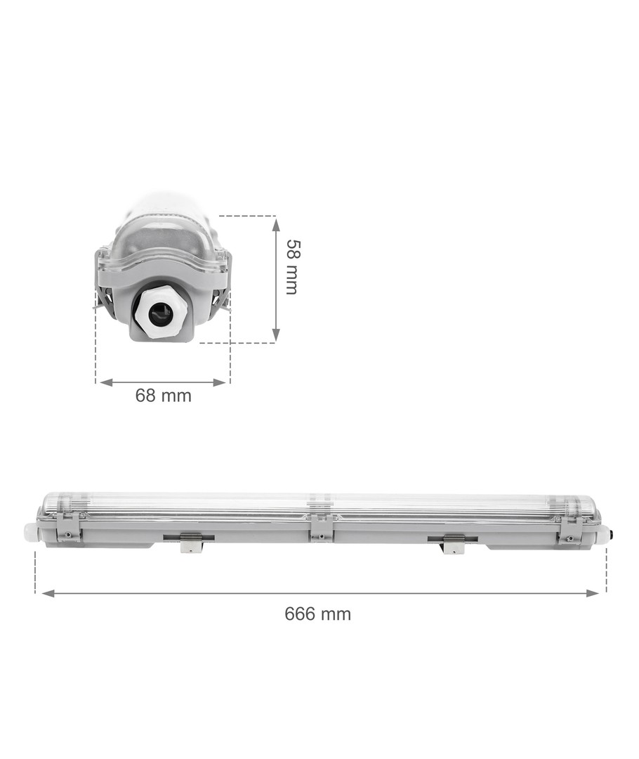 Vandtæt armatur klar til 1 x 60 cm LED rør.