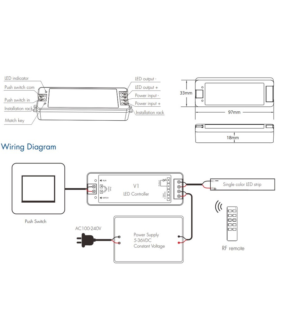 LEDlife rWave V1 variateur ainsi que la télécommande R6 pour la variation - contrôle de LED monochrome.