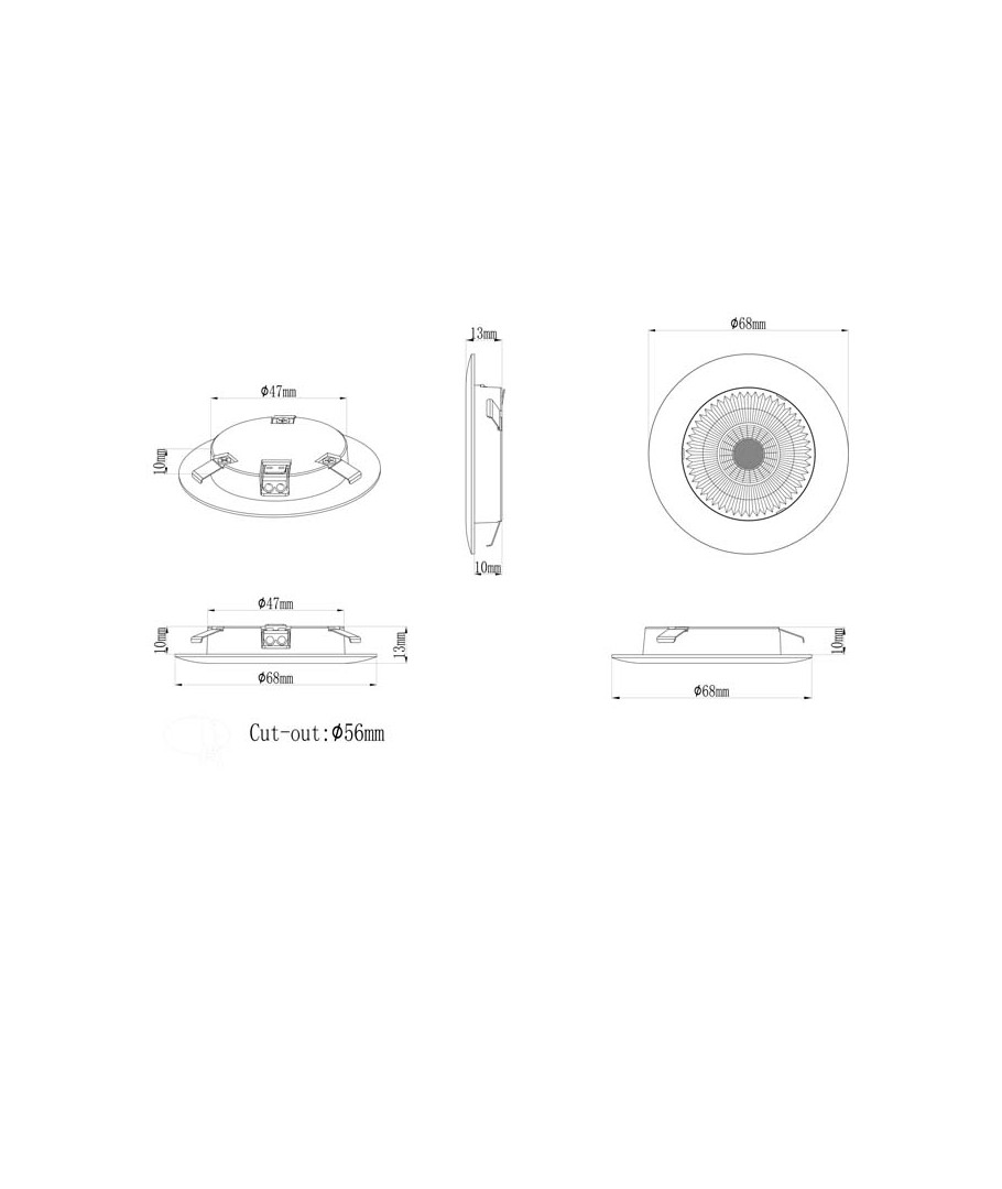 Enkel montering: Designet med lav profil og mulighet for å passe inn i standard Ø55 hull, er denne spotten perfekt for å bygge inn i både nye og eksisterende installasjoner i skap og møbler.