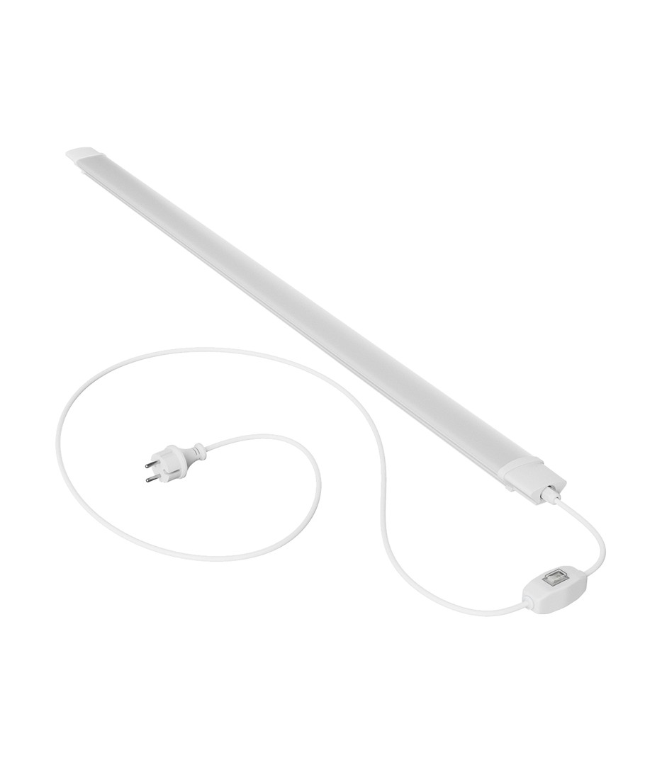 120cm LED armatur med formonteret ledning med stik og afbryder – klar til brug på få sekunder.