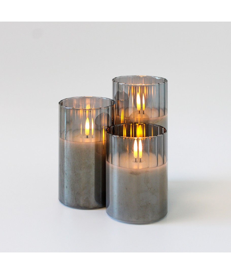 Forvandl din boligindretning med dette smukke LED Bloklys sæt i røgfarvet glas, der bringer hygge og elegance til ethvert rum. Lad dig betage af den realistiske flammeeffekt i ægte stearin, der kombinerer moderne teknologi med klassisk charme.