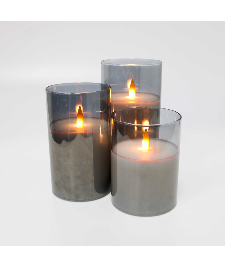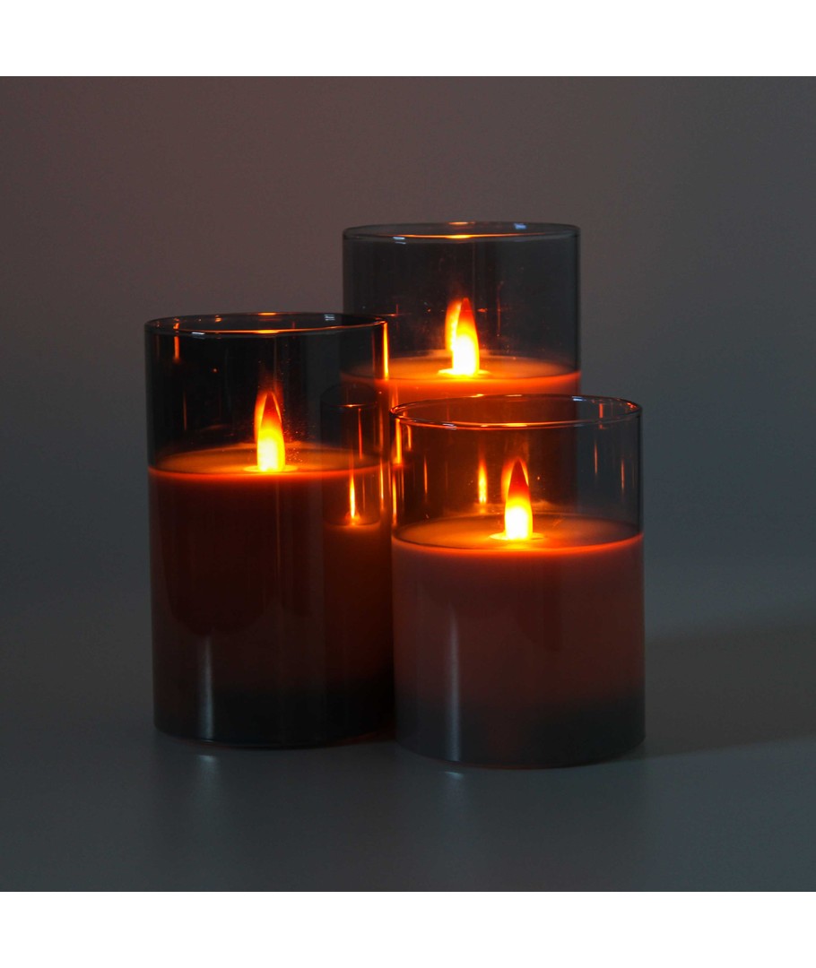 Oplev den hyggelige atmosfære med vores LED Bloklys sæt i røgfarvet glas, der bringer elegance og tryghed ind i dit hjem.