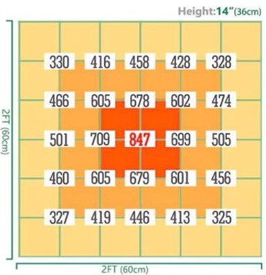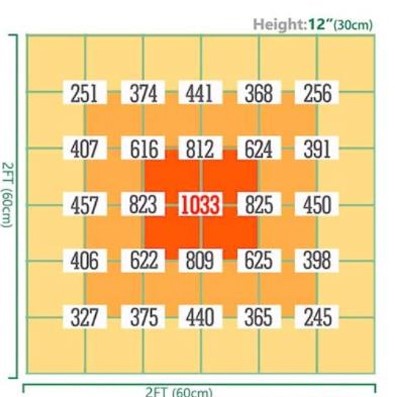 PAR (centrumwaarde): 1033 ppdf 30cm  605 ppdf 46cm