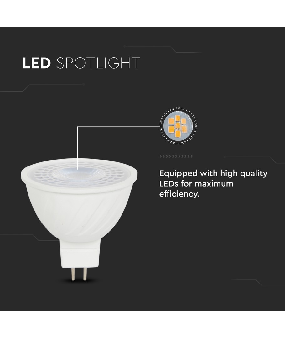 Oplev effektiv belysning med vores Vt-257 spotlys, der er designet til at levere 455 lumens af klar, kold hvid belysning. Dette spotlys har en MR16 / GU5.3 fatning og er perfekt til specifikke områder, hvor et lys med høj præcision er nødvendigt.