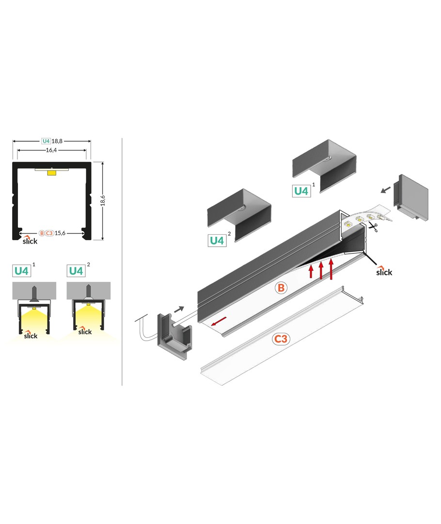 Zwart geanodiseerd, opbouw, LED profiel