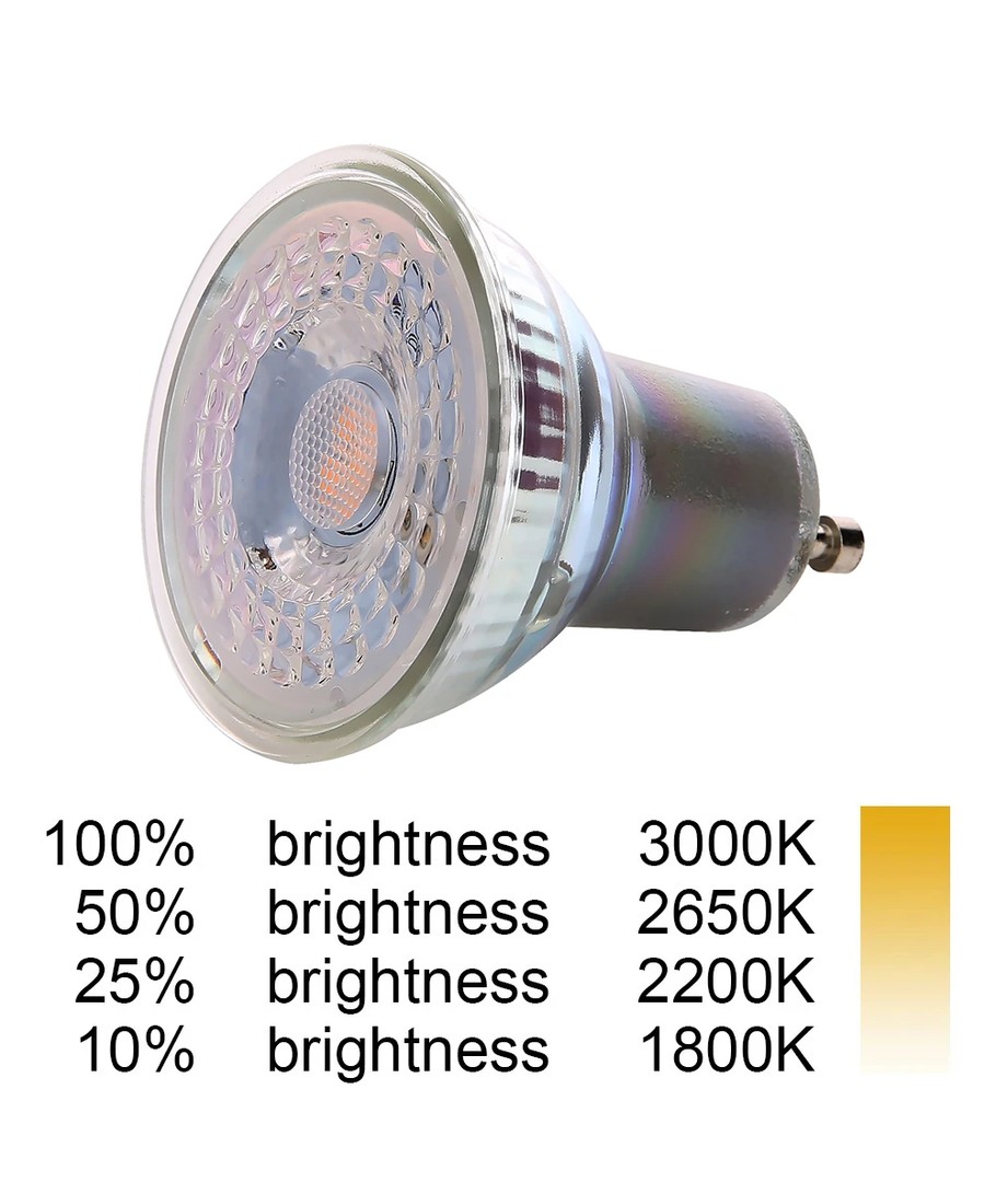 DimToWarm spot maakt het licht warmer van 3000 kelvin tot 1800 kelvin wanneer de lichtbron wordt gedimd.