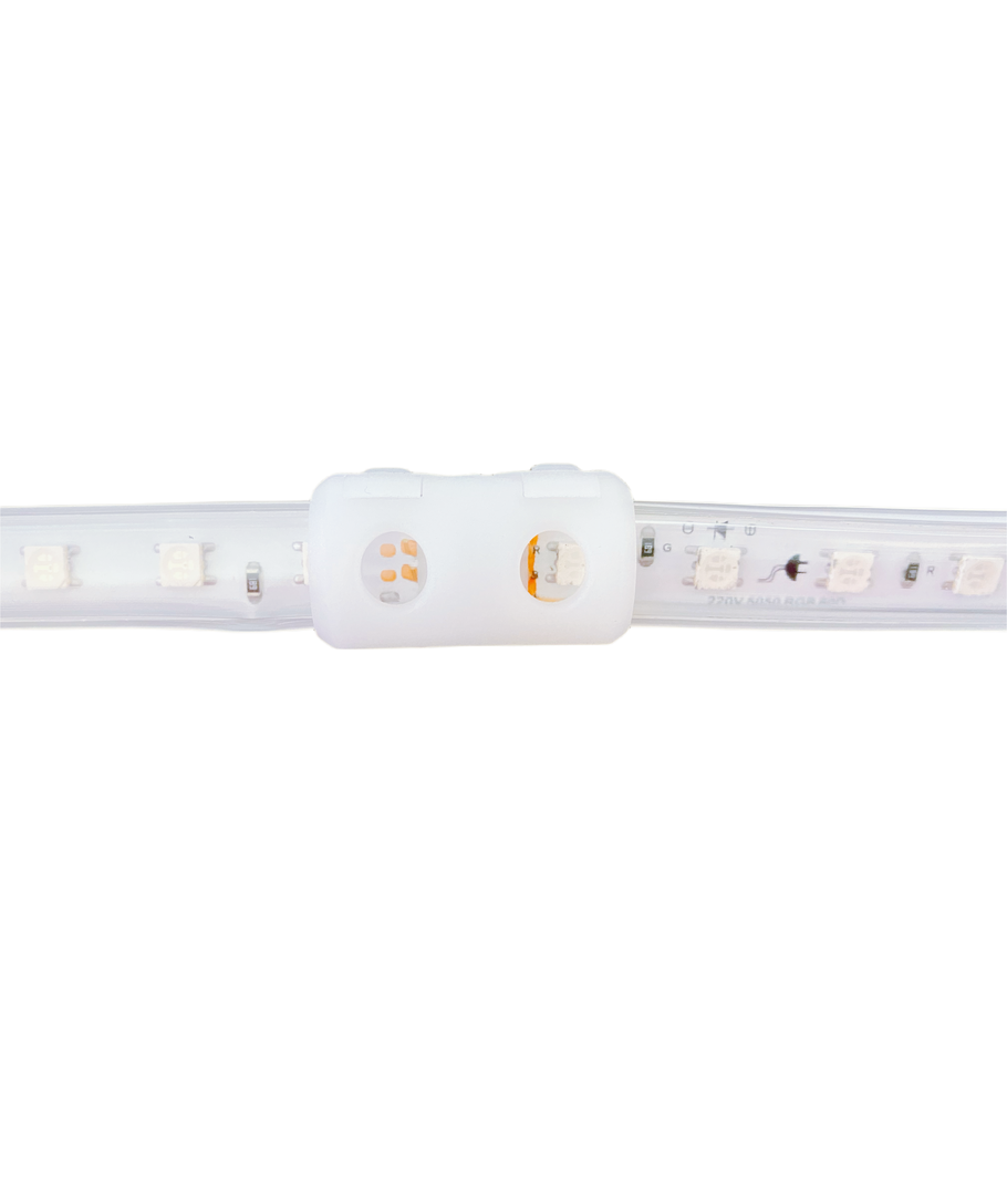 Verbindingsstuk voor onze 230v RGB CLIP-ON LED-strip.