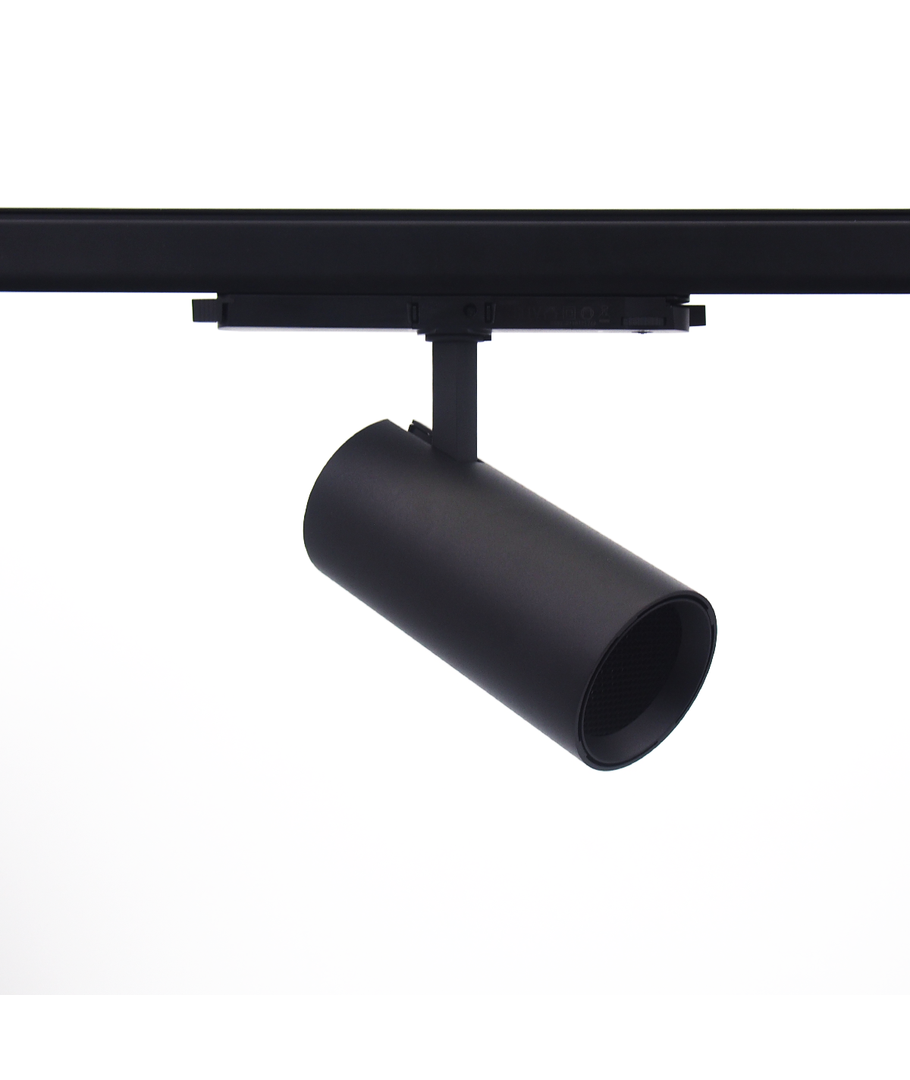 Voor professionele verlichting gelden hoge eisen - Deze 30W 3-fase tracklight is dimbaar via DALI-besturing en wordt compleet geleverd met barndoors voor een nauwkeurige regeling van het licht.