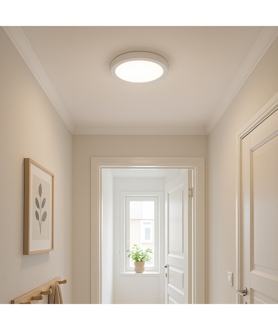 Let op de praktische afmetingen: een diameter van Ø22,5 cm en een hoogte van 3,9 cm, wat zorgt voor een slank en discreet profiel aan het plafond.