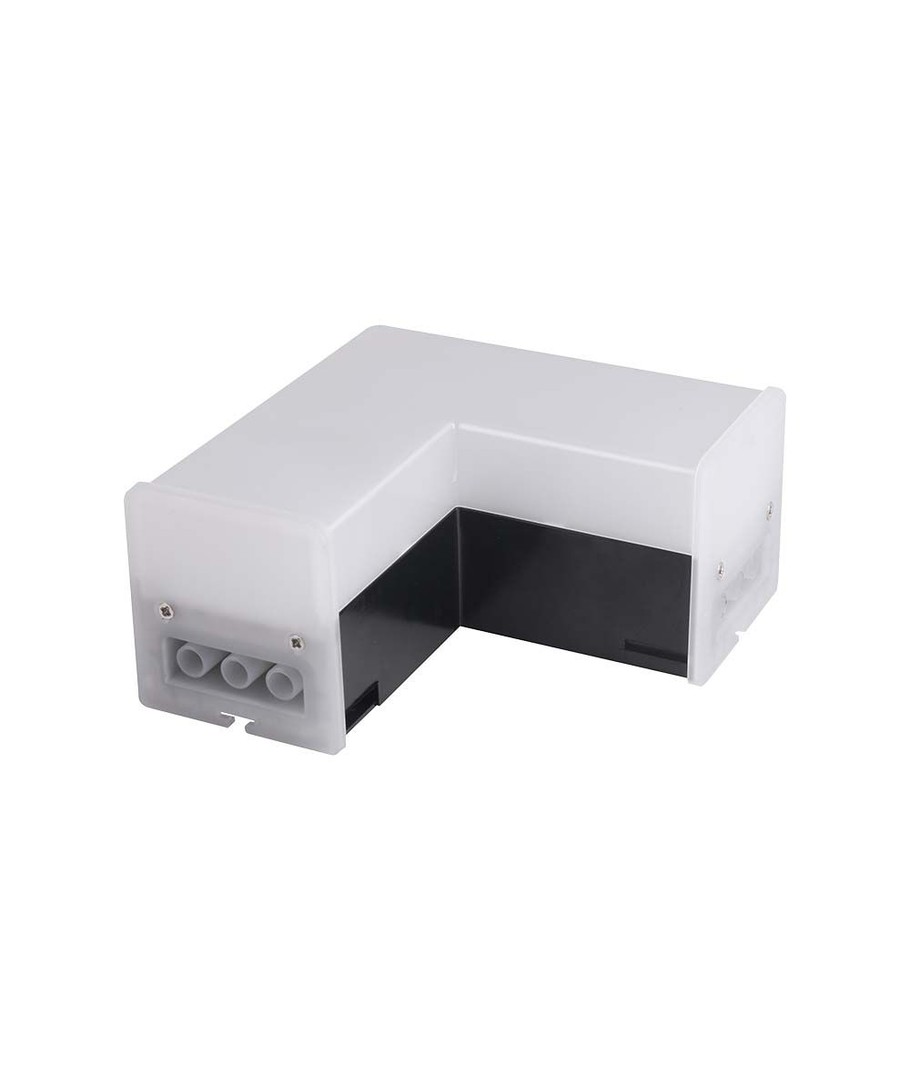 Met afmetingen van 116,5 x 58 x 116,5 mm is deze L-verbinding een compacte oplossing die gemakkelijk in verschillende montageomgevingen past. Houd er rekening mee dat het product een IP20-classificatie heeft, wat betekent dat het niet waterbestendig is en daarom alleen in droge ruimtes gebruikt mag worden.