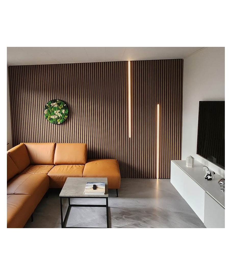 Haal het meeste uit je akoestische panelen met deze profielsset. Deze oplossing combineert een zwart aluminium profiel met een warm witte COB LED-strip, wat zorgt voor een elegante en discrete verlichting zonder zichtbare diodes. Perfect om een mooi en esthetisch licht te creëren tussen de lamellen van je akoestische panelen.