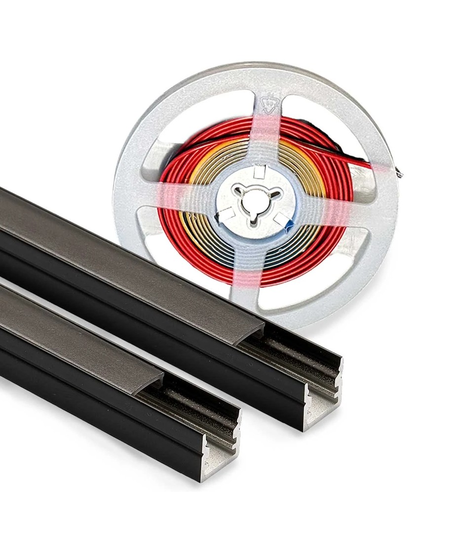 • 2 stuks 120 cm zwart aluminium profiel inclusief cover, eindstukken en montagclips.