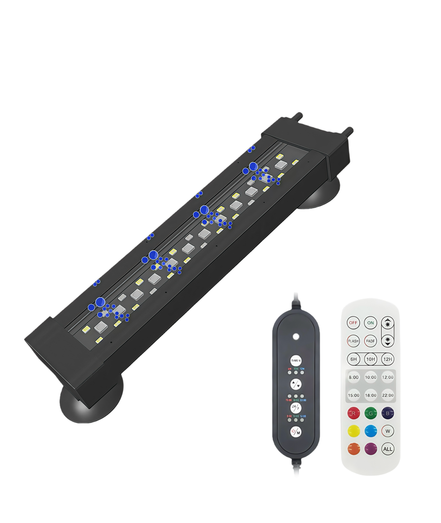 Transformeer uw aquarium met een innovatieve verlichtingsoplossing die efficiëntie combineert met elegantie. Deze 26-50 cm aquariumarmatuur biedt een ideale lichtbeleving dankzij de energiezuinige 6W LED technologie en het stijlvolle ontwerp in wit en blauw.