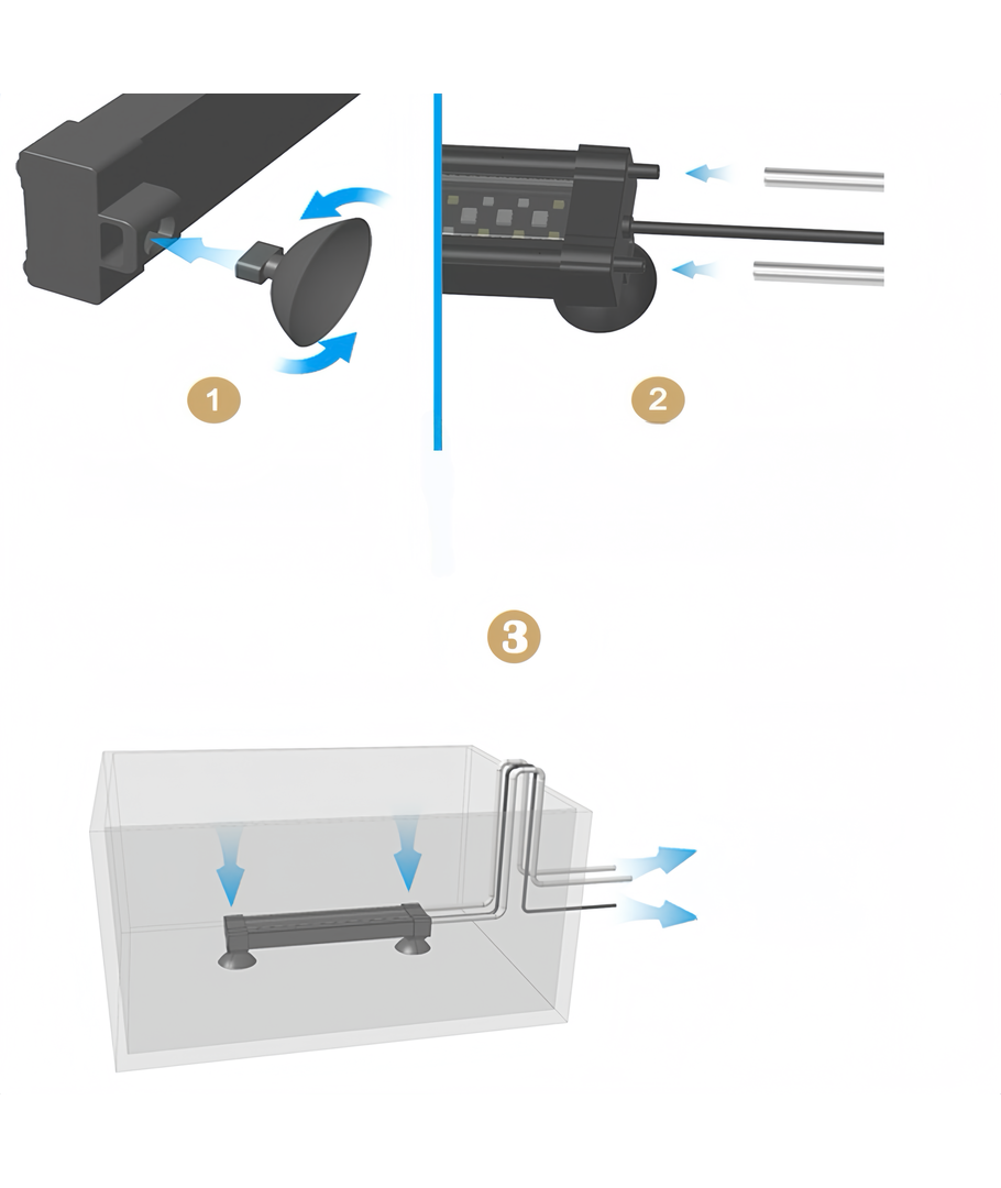 Deze armatuur is eenvoudig te installeren en kan worden aangepast voor aquaria tussen 26 cm en 50 cm. Het integreert naadloos met uw aquarium en biedt grote flexibiliteit in plaatsing en gebruik.