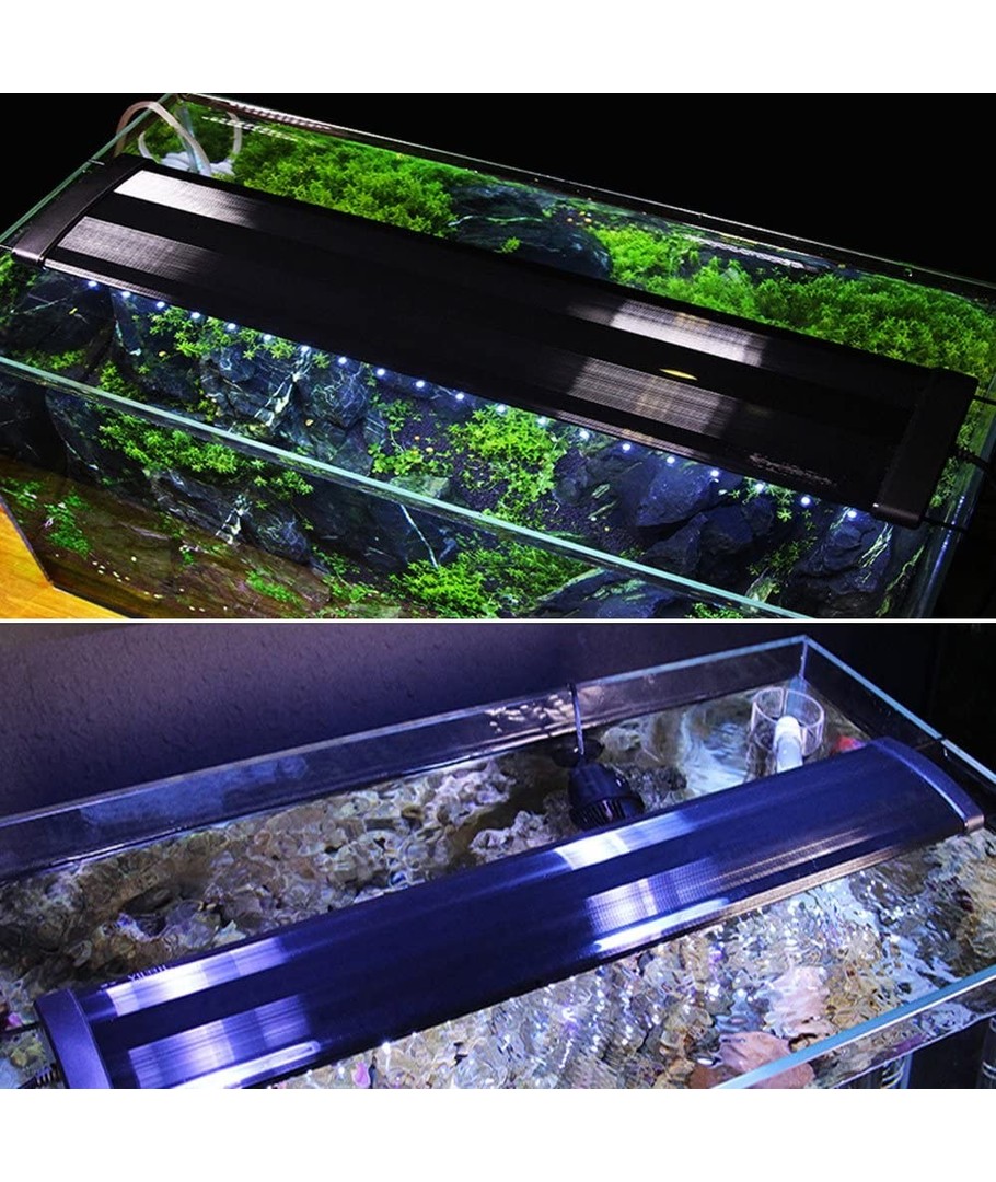 Uitgerust met een lichtsterkte van 2560 lumen en een indrukwekkende spreiding van 120 graden, zorgt dit armatuur ervoor dat het licht gelijkmatig over het hele aquarium wordt verdeeld. Dit geeft uw planten en vissen de beste omstandigheden om te gedijen, terwijl het een betoverende visuele ervaring creëert.