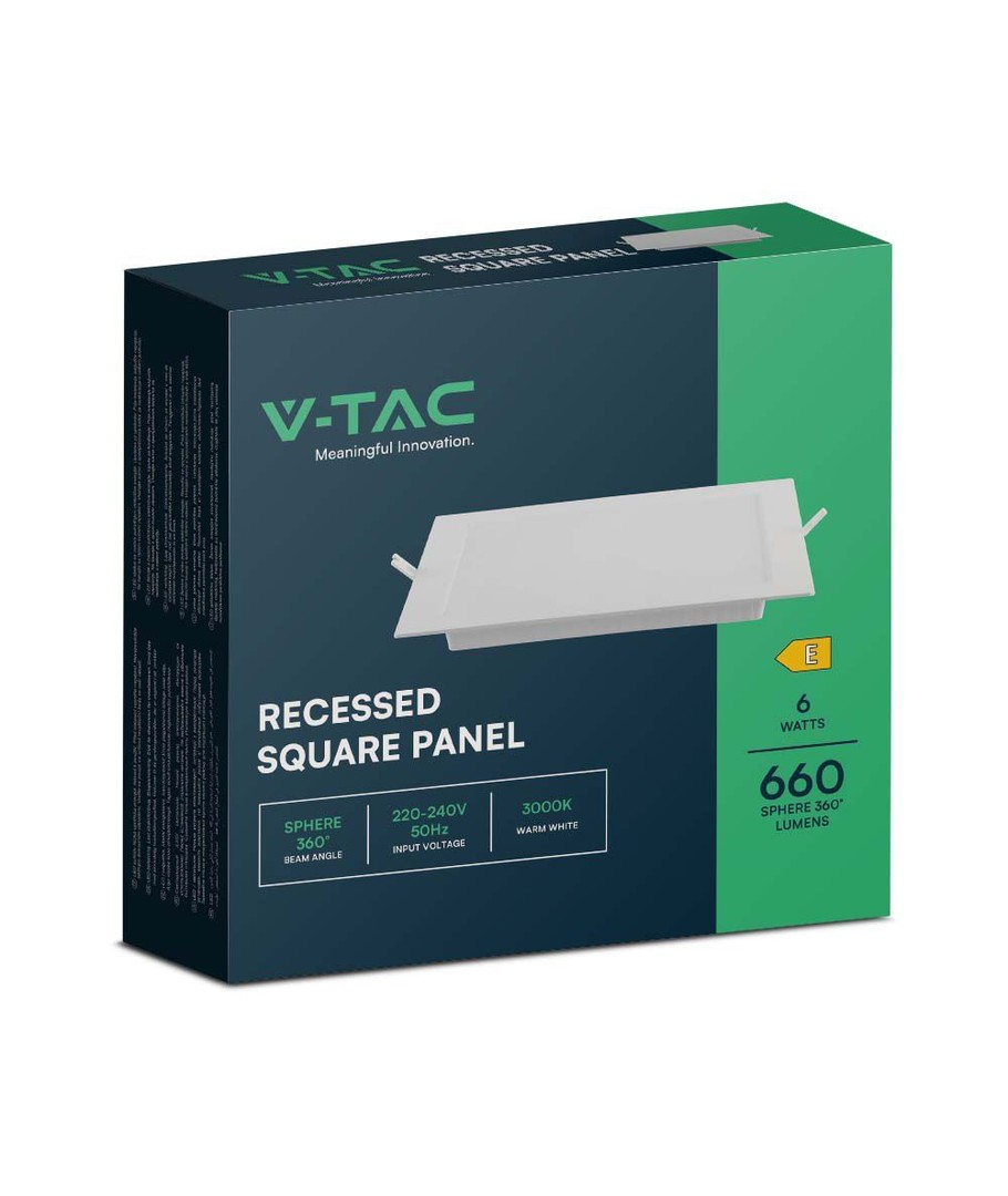 Al met al biedt het V-Tac 6W LED inbouwpaneel een optimale combinatie van efficiëntie, esthetiek en functionaliteit. Kies dit paneel voor een uitstekende verlichtingsoplossing die zowel het uiterlijk als de functie van uw ruimte verbetert.
