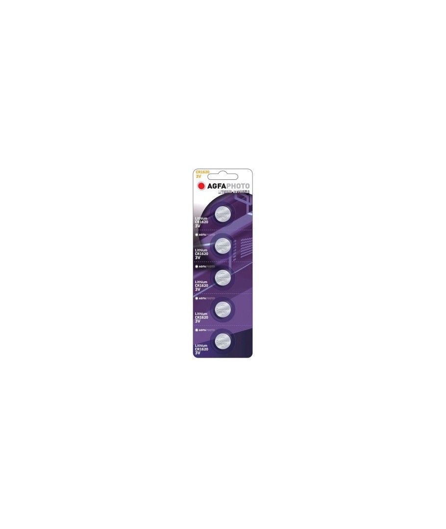 5 stuks CR1620 knoopcelbatterijen van AgfaPhoto.Wordt gebruikt voor onder andere speelgoed, rekenmachines, autosleutels of afstandsbedieningen.