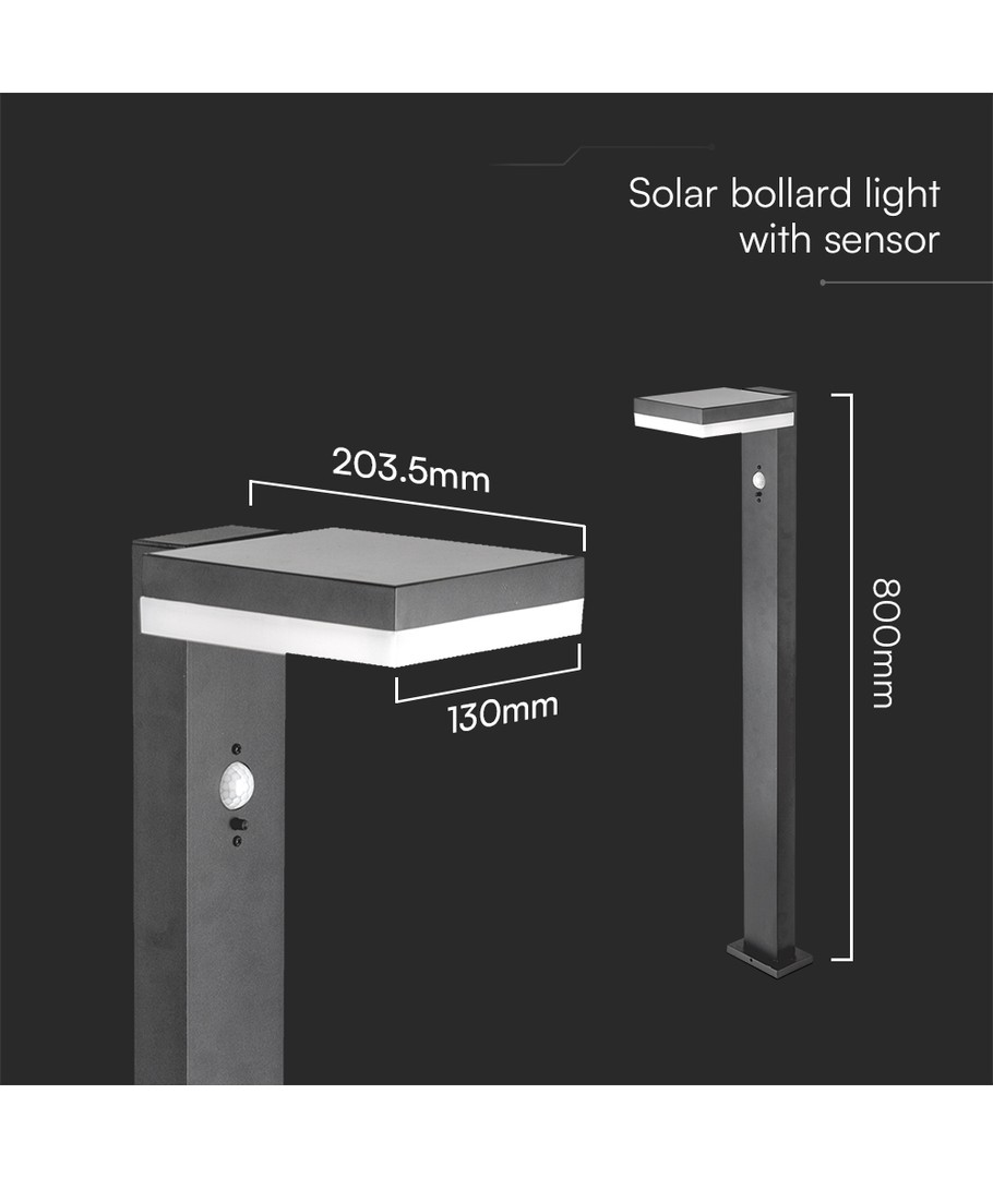 De lantaarnpaal is uitgerust met een praktische PIR sensor, die beweging detecteert en het licht automatisch inschakelt, wat zorgt voor energiebesparing en verhoogde veiligheid. Het ontwerp is gericht op functionaliteit en gebruikerservaring.
