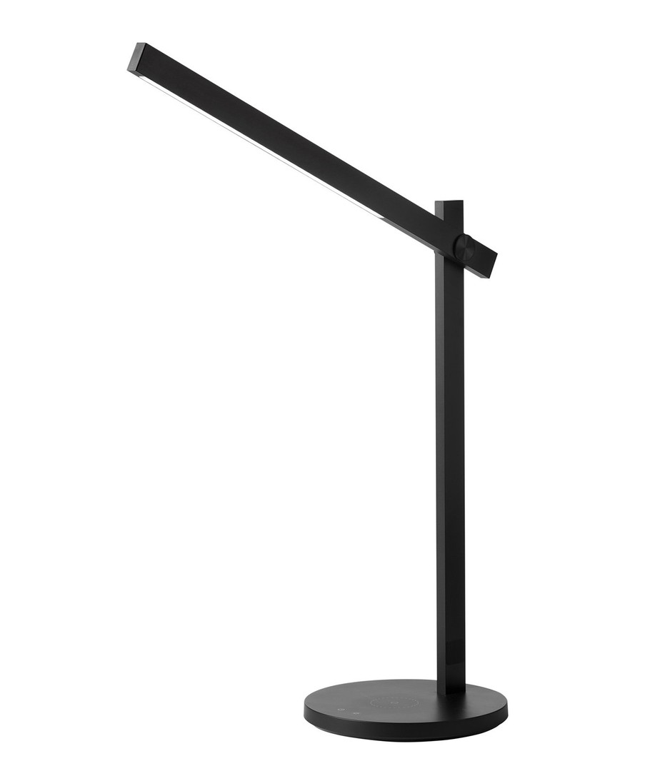 Eenvoudige, stijlvolle en slimme LED tafellamp in zwart met 3-staps Touch dim op de lamp van Nielsen Light. Wordt geleverd met ingebouwde mobiele lader, zodat u uw telefoon eenvoudig op de voet van de lamp kunt leggen voor draadloos opladen.
