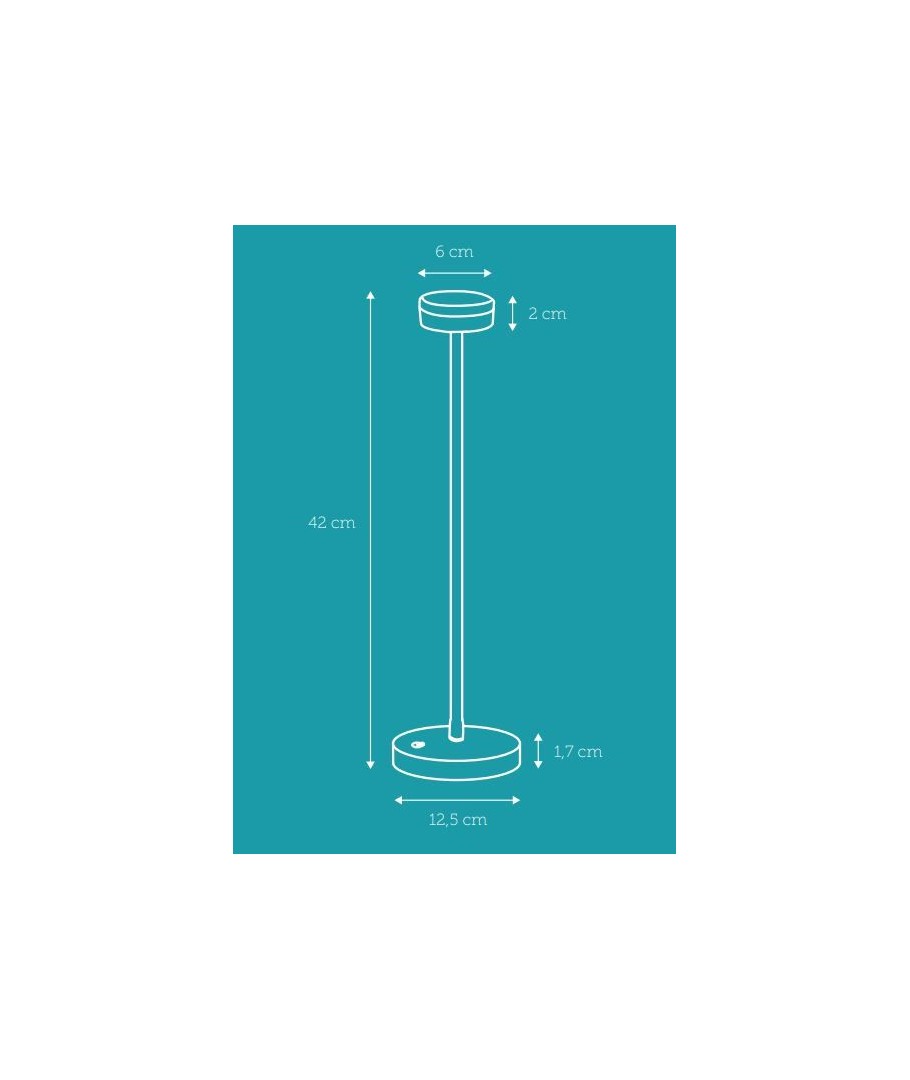 De voet van de lamp heeft een diameter van 125 mm en is 17 mm hoog.