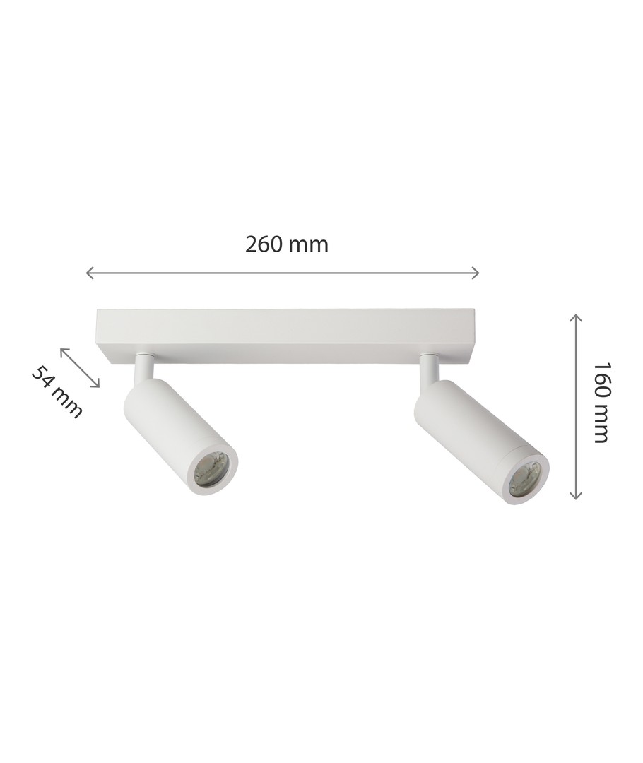 2x230V, IP20, 260x54x160, Wit, Verstelbaar, Zonder Lichtbron