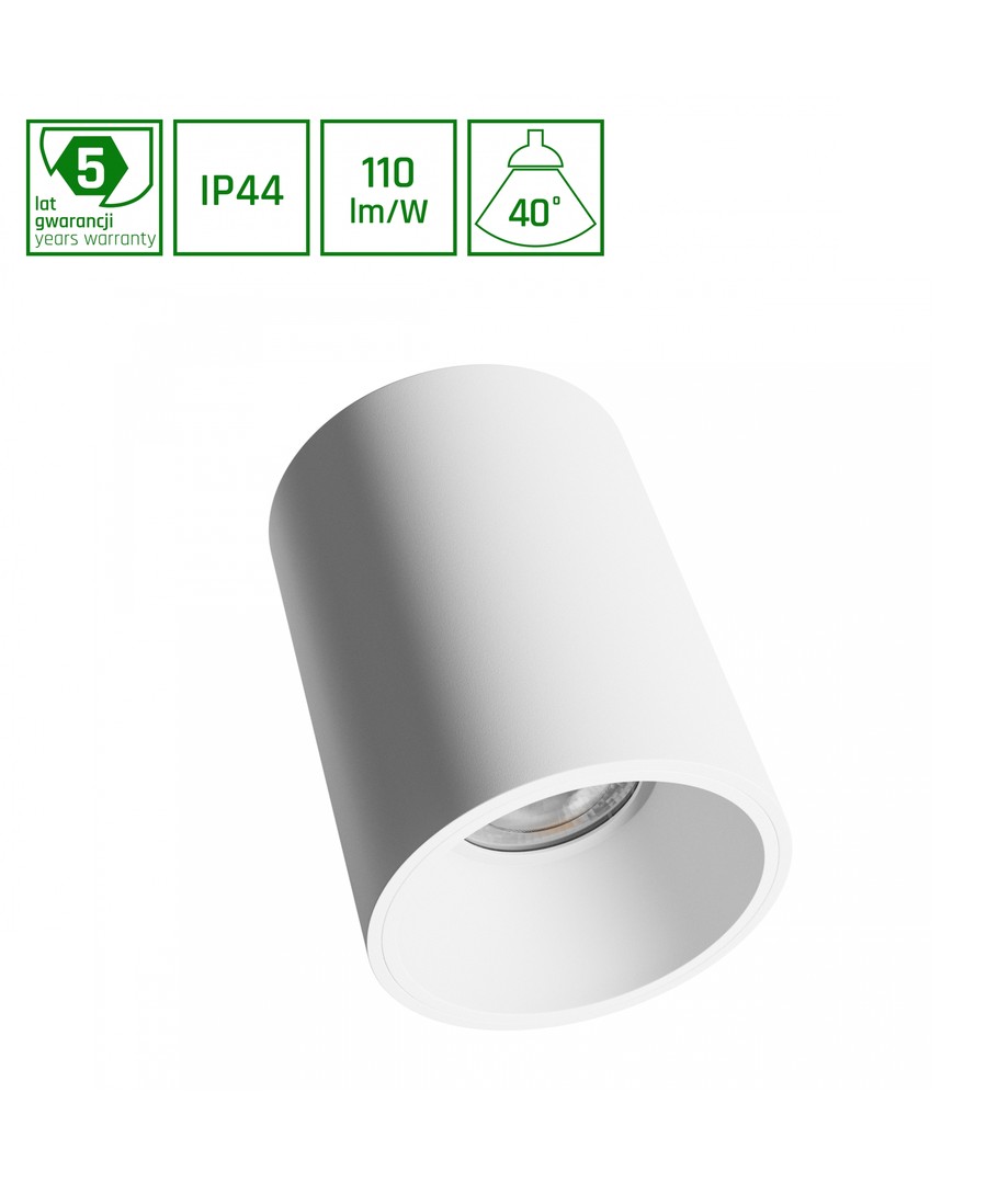 warm wit, 230V, 40°, IP44, UGR19, RA90, Ø75x100mm, wit, rond