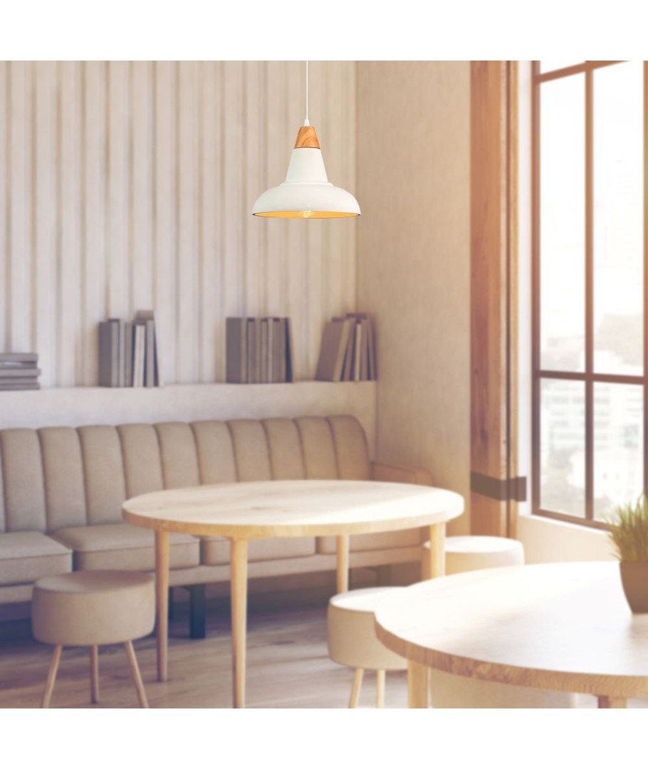E27 Hanglamp - Beton+Hout, Ø300 is een stijlvolle lamp gecombineerd van beton en hout, die past bij moderne interieurs.