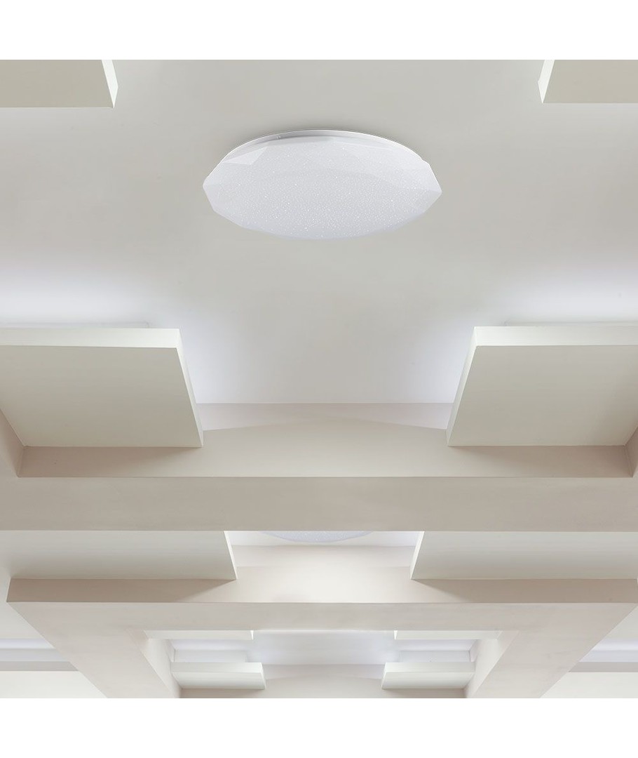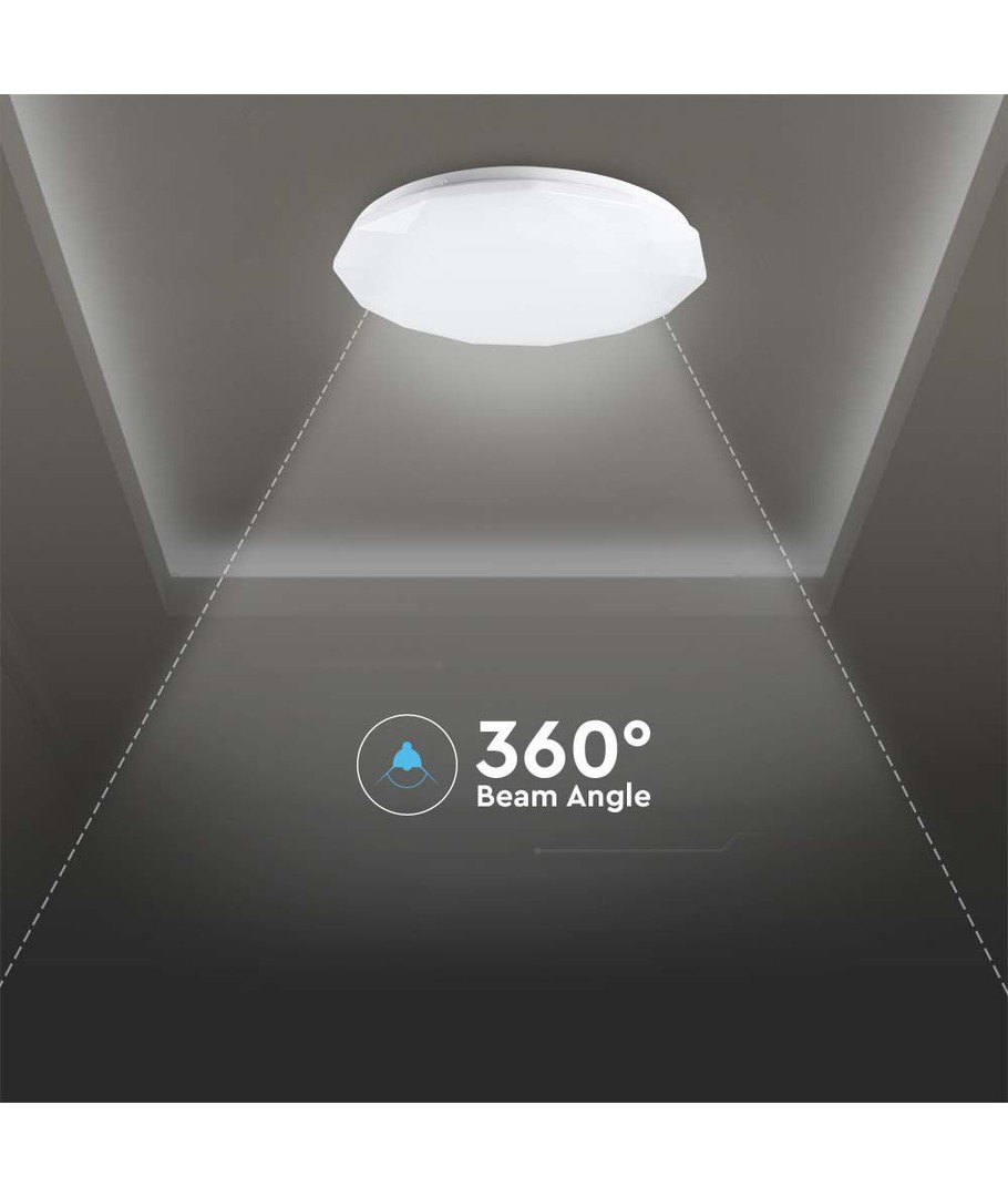 De plafondlamp heeft een lichtverdeling van 360 graden, wat ervoor zorgt dat het licht gelijkmatig verspreid wordt zonder donkere plekken. Dit maakt hem geschikt voor veel soorten ruimtes, waaronder woonkamers, kantoren en slaapkamers.