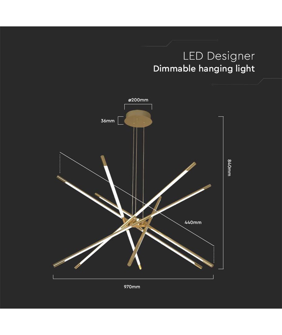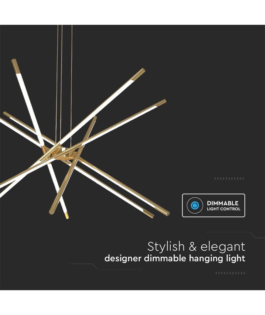 42W LED designer pendellamp, goud - Dimbaar, 12 buizen, 3000K, 85x31x120cm V-TAC Uitklappen