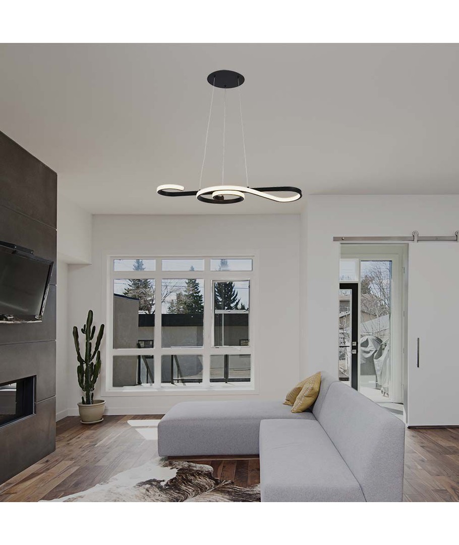 De afmetingen van de lamp van 700 x 250 mm geven hem een opvallende aanwezigheid in de ruimte, terwijl het moderne zwarte design gemakkelijk past bij verschillende interieurstijlen. De IP20-classificatie betekent dat hij niet waterbestendig is, dus hij is het meest geschikt voor droge binnenruimtes.