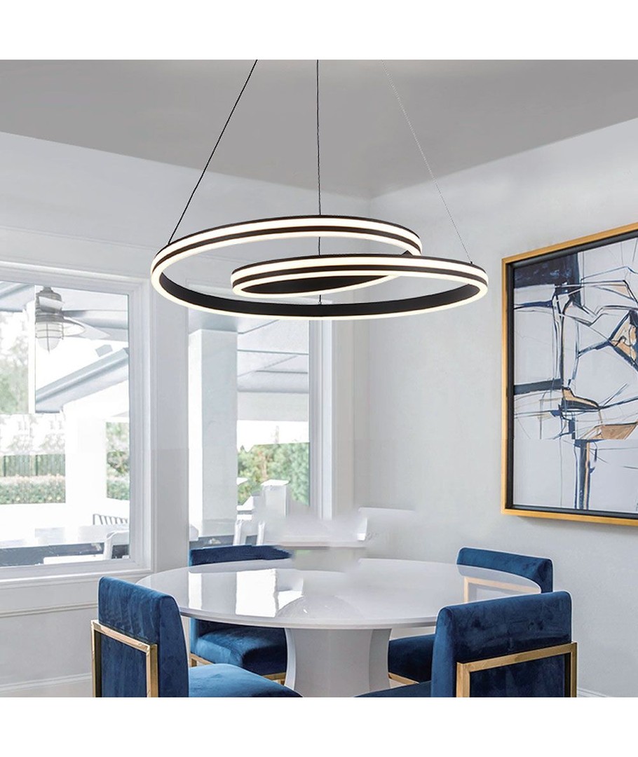 Al met al combineert de LED design hanglamp - 3in1 zwart elegant design en efficiëntie om uw huis te verlichten.