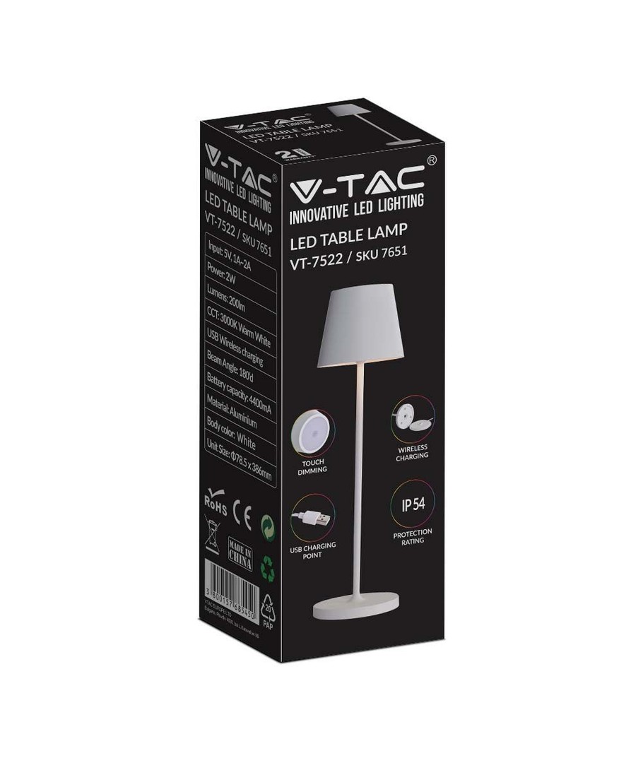 Deze innovatieve draadloze tafellamp is perfect voor zowel binnen- als buitengebruik, ontworpen voor degenen die stijl, functionaliteit en gemak waarderen. Met zijn elegante witte uitstraling past de V-Tac oplaadbare tafellamp in elk modern interieur.