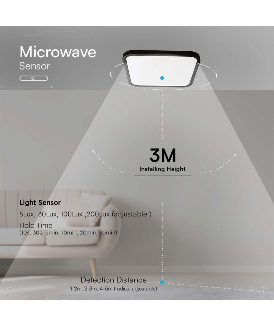 IP44-classificatie betekent dat dit LED-dome licht ideaal is voor gebruik in gebieden die worden blootgesteld aan vocht en spatwater. Met de geavanceerde microgolf sensor wordt het licht automatisch geactiveerd, wat het zowel energiezuinig als handig maakt.