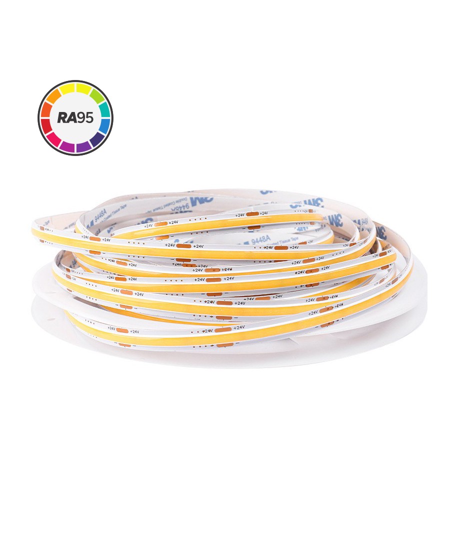 Zonder spanningsval, 7W/m, IP20, 480 LED per meter, 24V, COB LED, RA95
