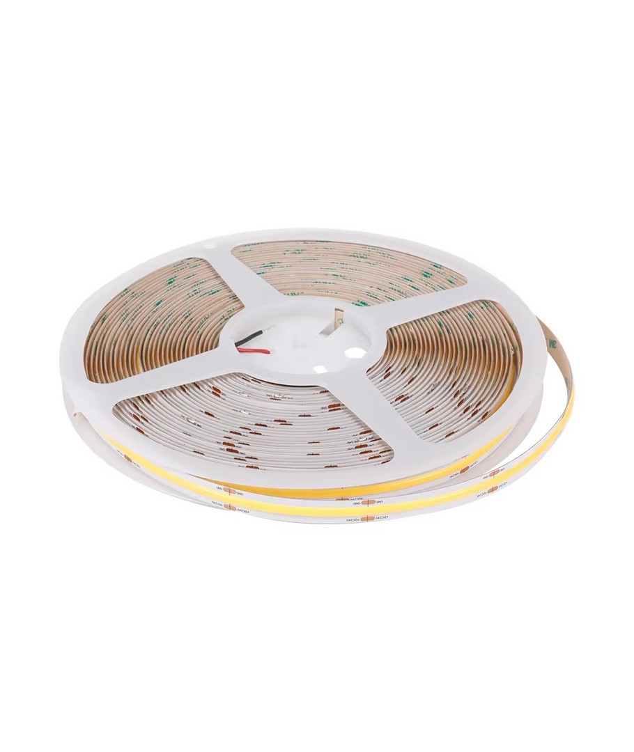 Deze COB LED strip onderscheidt zich doordat hij een volledige lengte van 20 meter heeft zonder spanningsverlies zoals bij andere 24V strips.