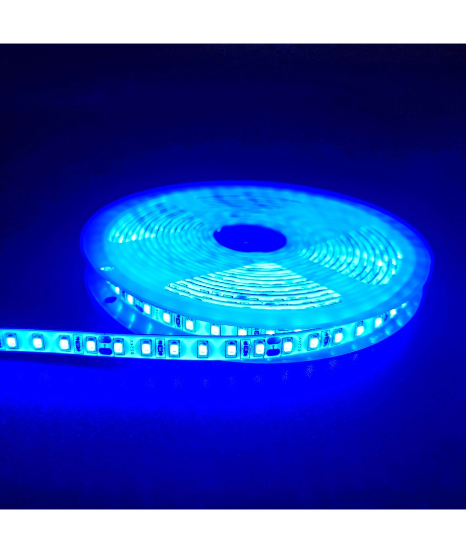 Creëer een sfeervolle verlichting met deze Blauwe 10W/m LED-strip van 5 meter, die een helderdere kleur heeft dan RGB.