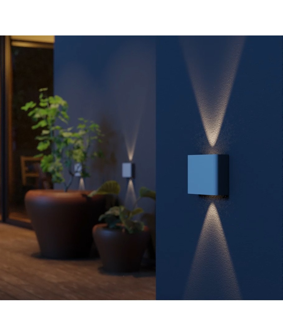 De zwarte afwerking van de Luna 2W op/neer wandlamp geeft hem een modern en minimalistisch uiterlijk, dat gemakkelijk elke bouwstijl aanvult. Of hij nu wordt gebruikt om een ingang, terras of tuingebied te verlichten, hij belooft betrouwbare en mooie verlichting te leveren.