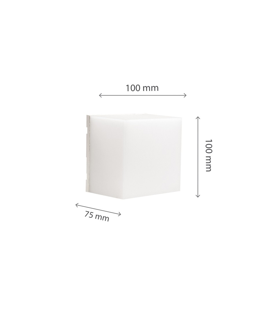 De stijlvolle wandlamp is een betrouwbare oplossing voor het verlichten van buitenruimtes. Met een robuuste en compacte constructie meet de lamp 100 x 75 x 100 mm, waardoor hij discreet is, maar tegelijkertijd een effectieve lichtbron voor uw buiteninrichting.
