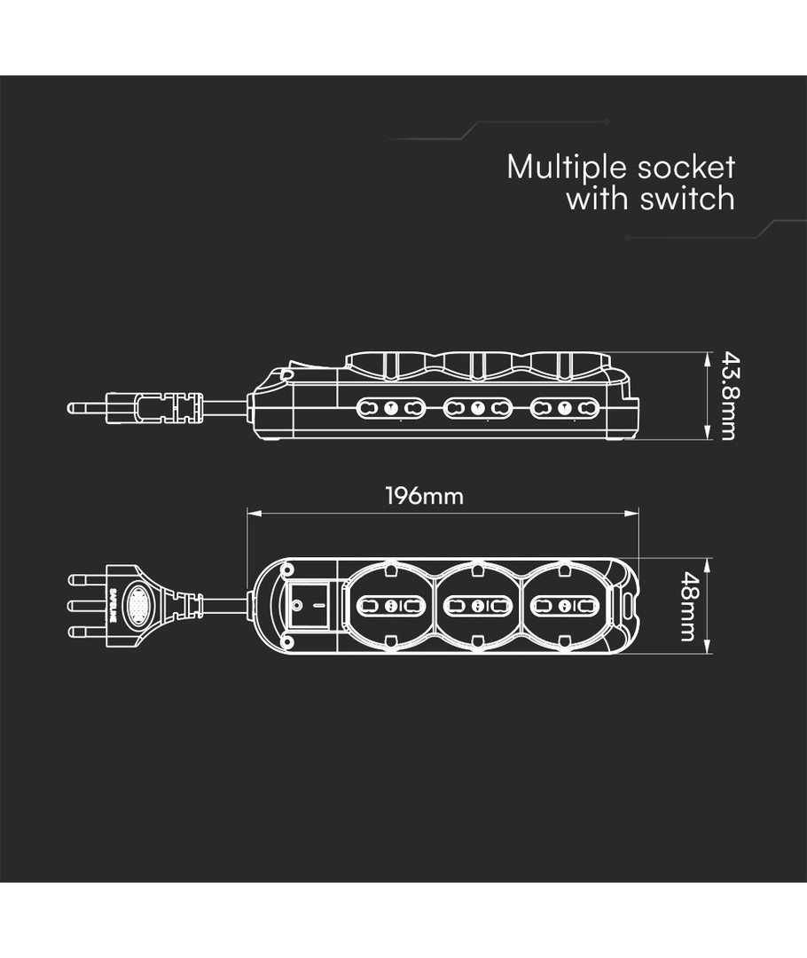 1,5m - Multicontactdoos met schakelaar 3x2-polig, zwart V-TAC Uitklappen