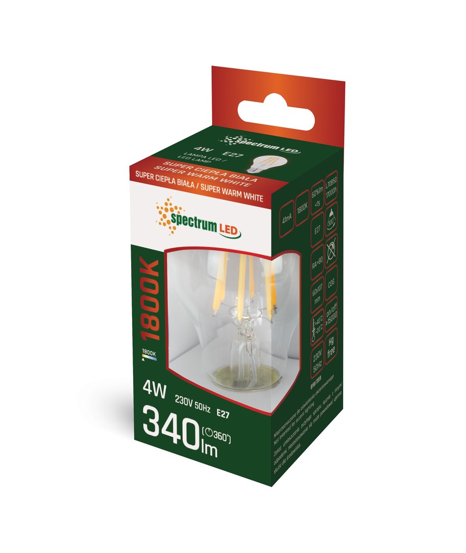 De Spectrum 4W LED Lamp geeft een extra warm wit licht van 1800K af. Dit creëert een gezellige sfeer met de warme gloed die kenmerkend is voor traditionele gloeidraadlampen.