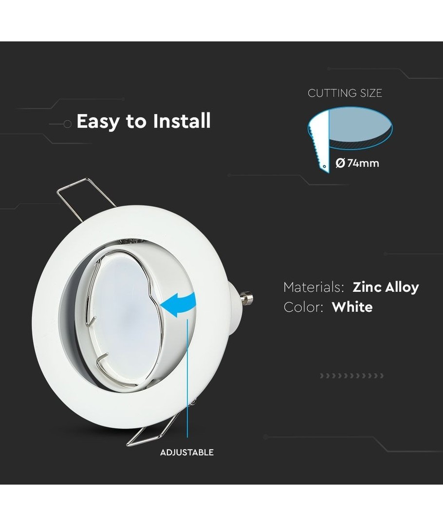Geschikt voor MR16 of GU10 LED-lampen met een diameter van 50 mm.