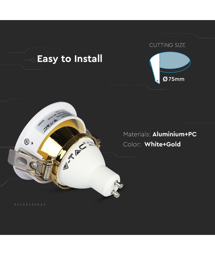 GU10 inbouwspot - Rond, wit/goud, aluminium, IP20, gat: Ø7,5 cm, afm: Ø8 cm V-TAC Uitklappen