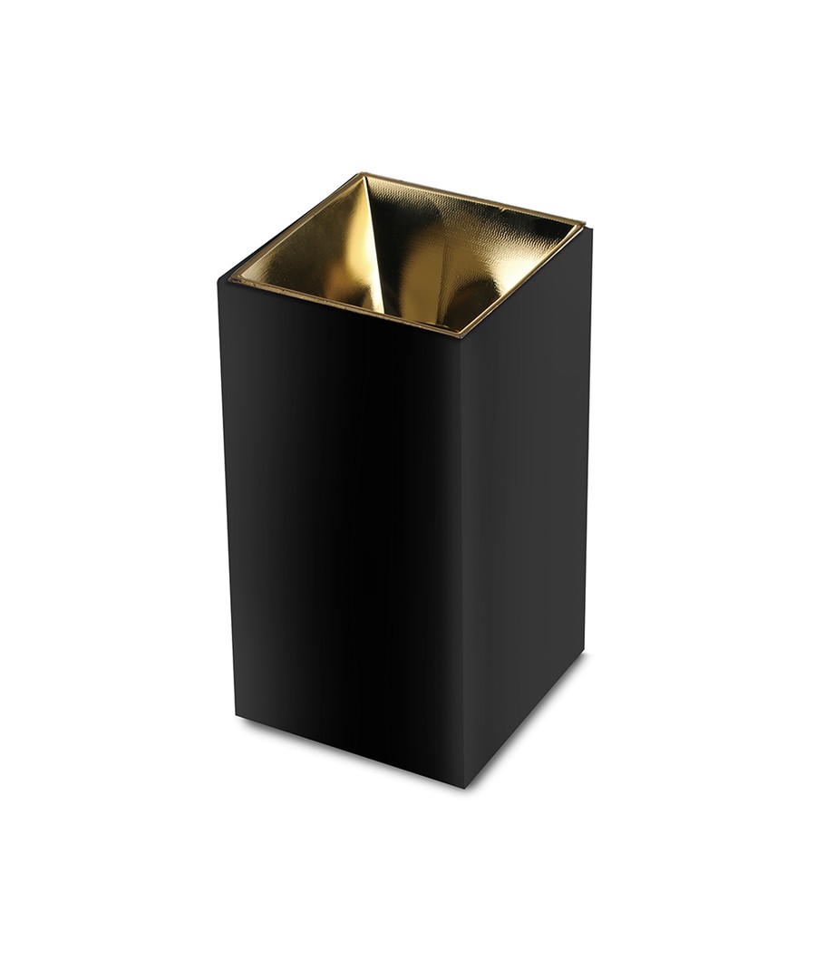 Ervaar de perfecte combinatie van modern design en functionaliteit met deze vierkante GU10 lamp. Met zijn unieke zwart+goud kleurcombinatie brengt hij zowel stijl als elegantie in elke ruimte waar hij wordt geplaatst.