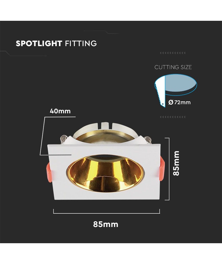 Transformeer uw ruimtes met deze stijlvolle en efficiënte verlichtingsoplossing. De combinatie van de tijdloze witte lijst en de luxe gouden reflector zal zeker indruk maken en een warme, uitnodigende gloed geven.
